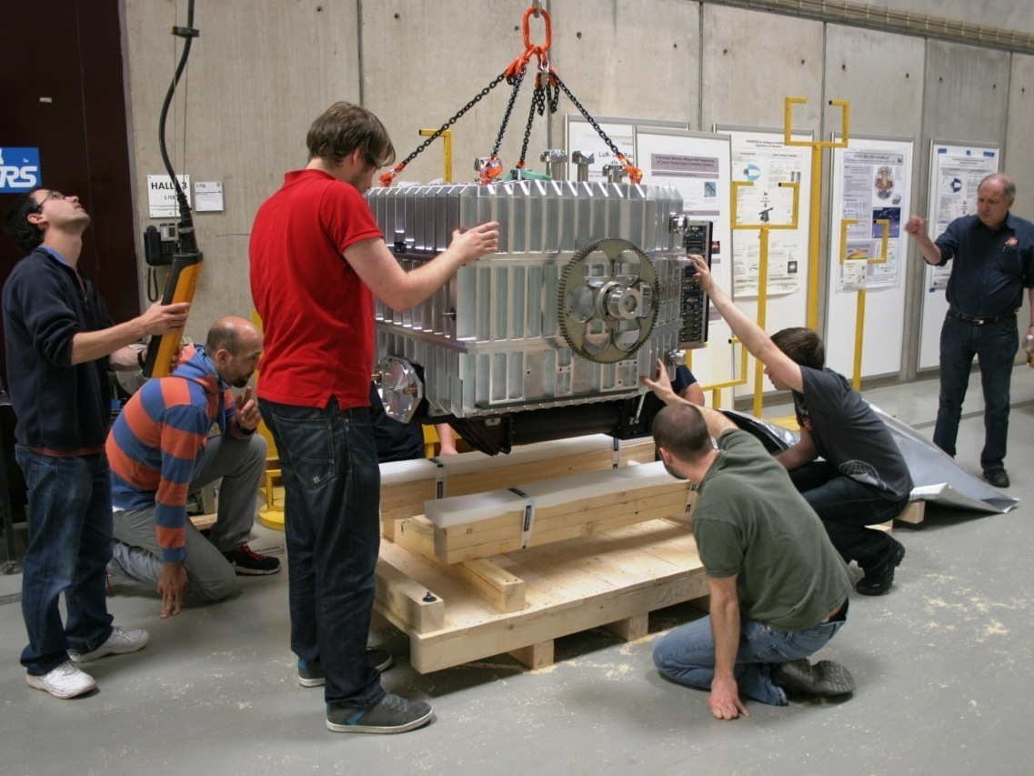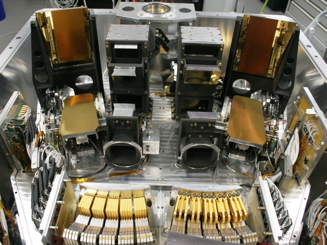 The FIFI-LS instrument. It is a basically a one cubic meter box that weighs several hundred kilograms. It is very rugged because of the required precision and stability of the optical path inside (see below) and the fact that it has to be able to be able to withstand a 9G impact in case of an accident.