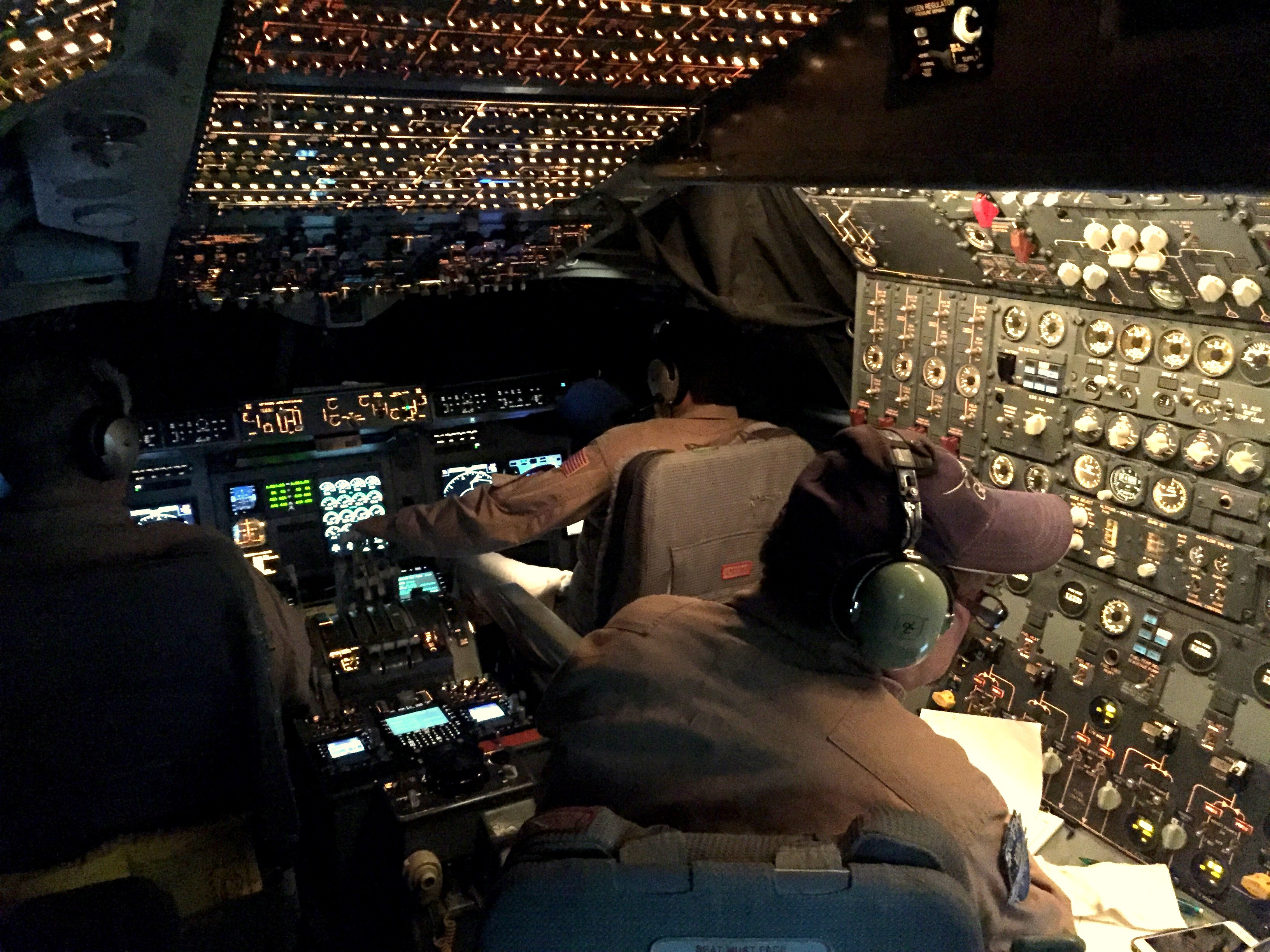 The 747 SP is basically an airplane from the 1970s, and it has the vast array of dials and steam gauges to prove it. It is also flown with a three person crew, the third position being the flight engineer. However, the SOFIA 747 SP was upgraded with a glass cockpit in the mid 2000s, as can be seen from the panels in front of the two pilots. The systems and their indicators remained unchanged, though, leading to an interesting mix of old and new technologies in the cockpit.